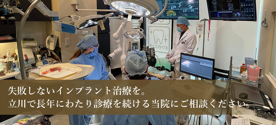 立川駅前にいむら歯科には立川や東京圏だけでなく、全国からもインプラント治療に来られる患者様がたくさんいらっしゃいます。